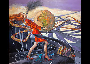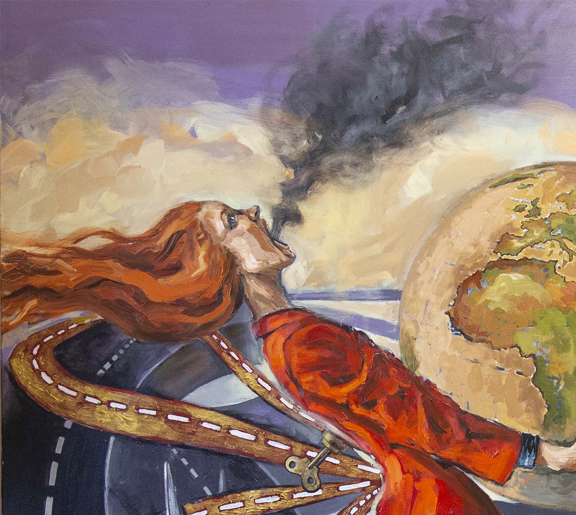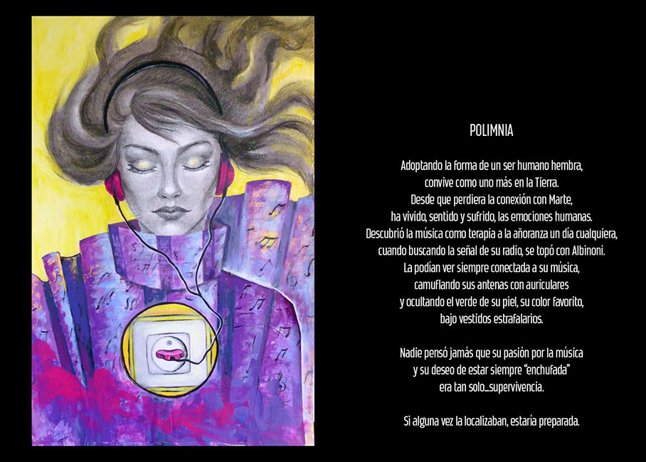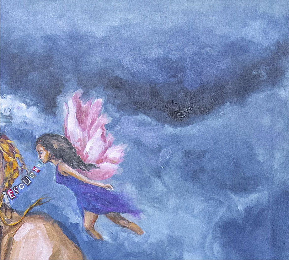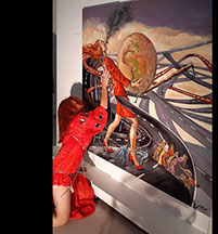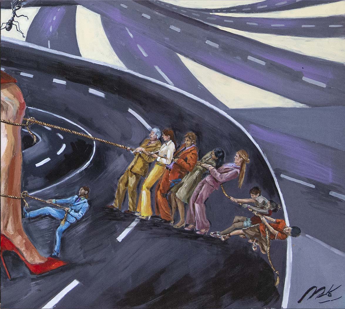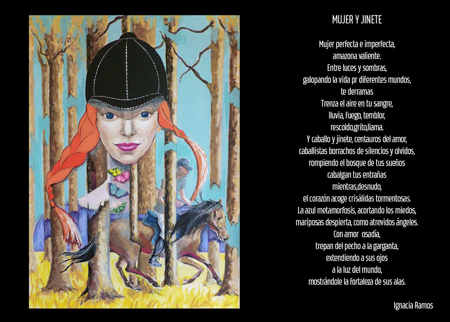 Contemplándola frente al lienzo, uno atisba su interés por el trazo, por el equilibrio o el desequilibrio del color, por la geometría variable de sus perspectivas. Su mirada se interna en él con ojos de exploradora, con el cuidado táctil de la alfarería, con el mimo de una diosa que inventara el mundo. Al menos, el suyo propio. La textura, el color, he ahí sus herramientas. Busquen referencias donde gusten –El Bosco, el cómic, Munch, el pop, Goya, Renau, lo trágico y lo irónico--, pero todas sus piezas exhalan una indubitable personalidad propia. Auténtica, como la vida misma.
