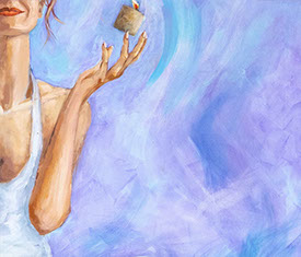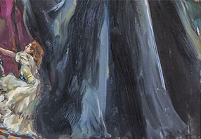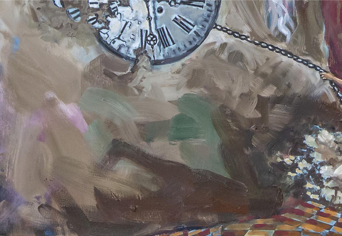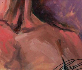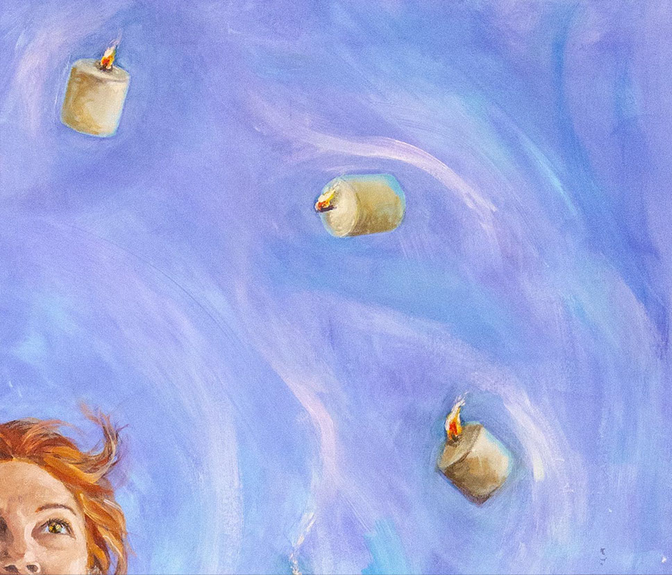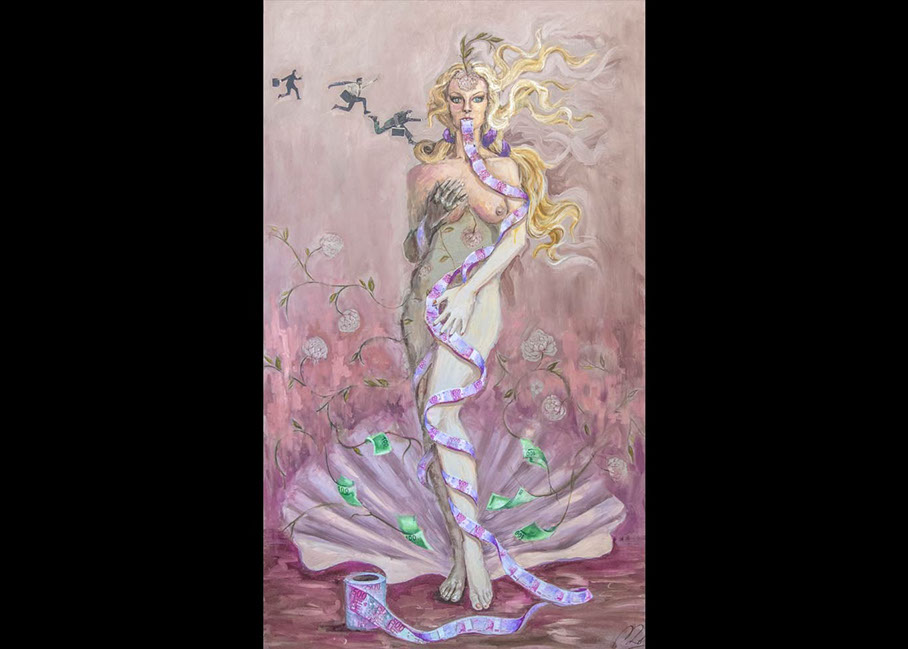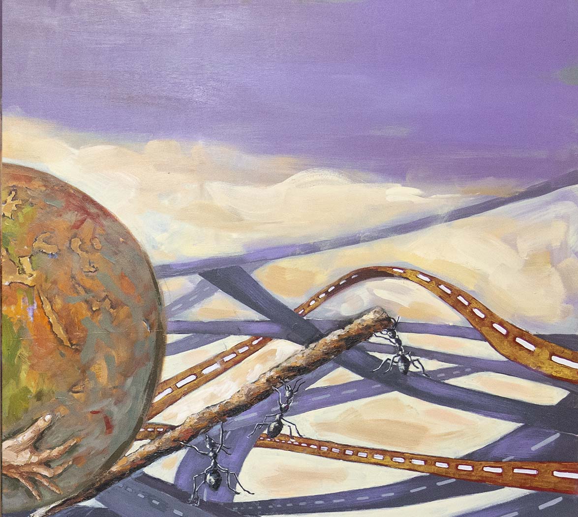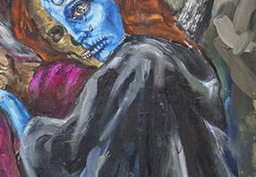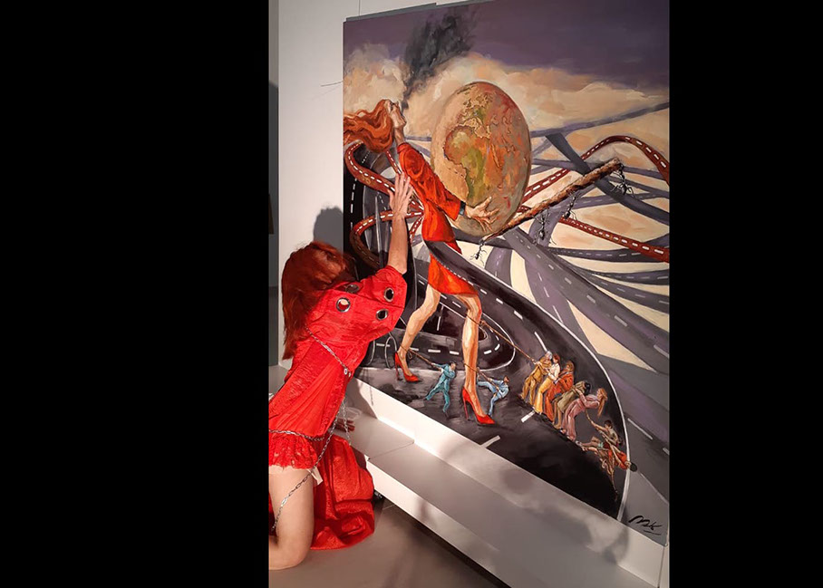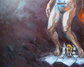 Contemplándola frente al lienzo, uno atisba su interés por el trazo, por el equilibrio o el desequilibrio del color, por la geometría variable de sus perspectivas. Su mirada se interna en él con ojos de exploradora, con el cuidado táctil de la alfarería, con el mimo de una diosa que inventara el mundo. Al menos, el suyo propio. La textura, el color, he ahí sus herramientas. Busquen referencias donde gusten –El Bosco, el cómic, Munch, el pop, Goya, Renau, lo trágico y lo irónico--, pero todas sus piezas exhalan una indubitable personalidad propia. Auténtica, como la vida misma.