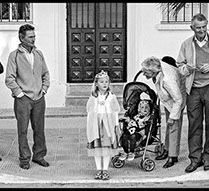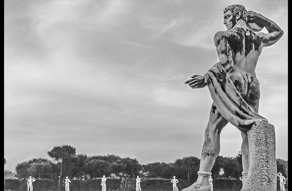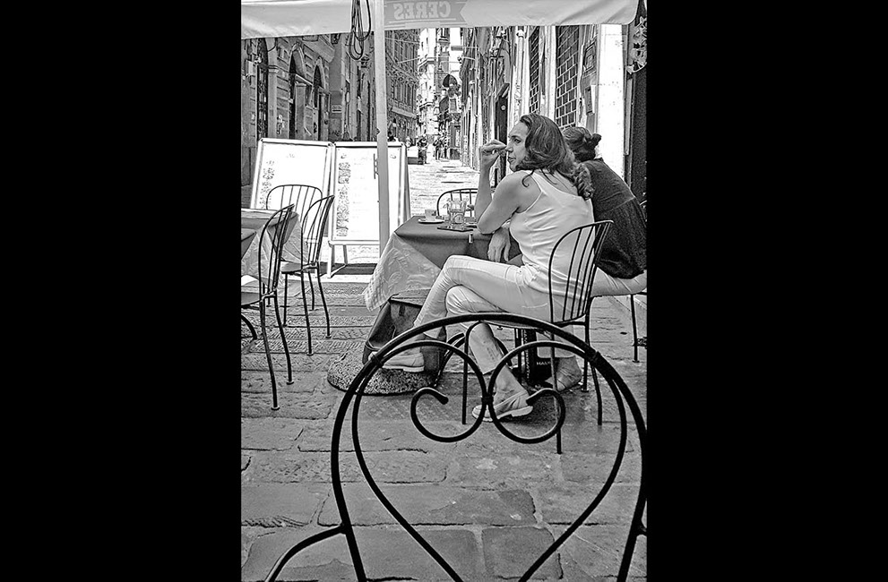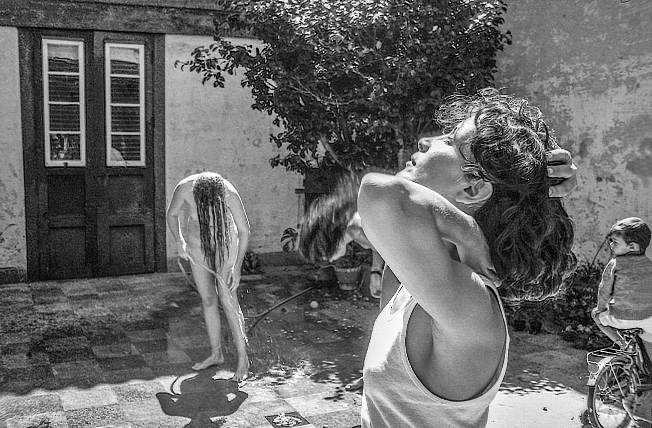 Siempre eres tú. Miro tu fina espalda de góndola y observo la belleza de cada una de tus vertebras. En ese momento exacto en el que te reclinas sentada en el escalón, una paloma veneciana vuela interesada por el tebeo de Donald que lee tu hermano, o tal vez sea tu sobrino. El mismo que otea de reojo tu tío… o quizás tu padre. Y luego en un respingo del tiempo, miro otra vez tu espalda perfecta desnuda, acabando en tus nalgas de Adonis gaditano. Y de pronto cambias tu pellejo por el de otro héroe y tu energía planea por la alameda a la que das nombre. Esa que satura de colores, de gente y de alegría la vida de Sevilla. Ahí te descubro de nuevo, cerca de un café, tu pelo rubio, tu perro y tu sonrisa eterna. Esa misma que tienes en tu bautismo de calicha en Tenerife cuando tu cascada de rizos negros derrumba tu cuerpo desnudo y mis sueños.