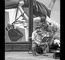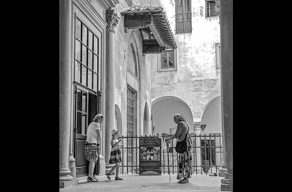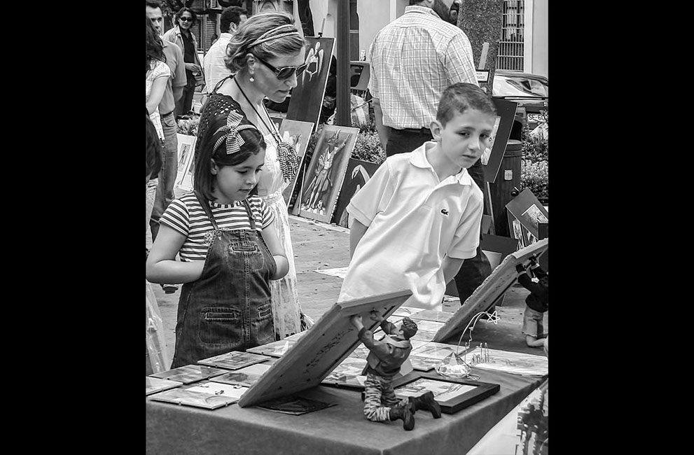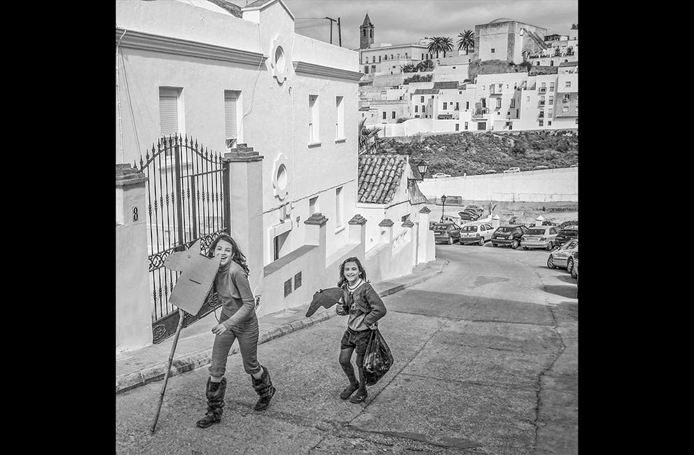 Juan Quiñones Grimaldi lleva desde su más tierna juventud asombrando a los espectadores de sus fotografías y sus cuadros. Su fina mirada captura la vida en el momento idóneo para contarnos historias plagadas de detalles que inundan nuestra imaginación. Esa mirada le ha servido para ganar reconocimiento en dos mundos: el de la fotografía y la pintura. En la primera maneja con maestría el blanco y negro, la composición y la temática cotidiana. Su pintura es el espejo colorista de su fotografía. Destaca la fijación por el detalle y el cuidado puesto al moldear, casi como un escultor, las formas de los personajes, las arrugas de la piel, los pliegues de las prendas. En ambas brilla revelándonos, en toda su naturalidad, en toda su verdad, la vida, la personalidad y la belleza de las gentes que se han cruzado con su mirada. Desde su Chiclana natal hasta Nueva York, desde Cádiz a Venecia, pasando por Málaga, Sevilla, Las Palmas, Florencia o Roma.