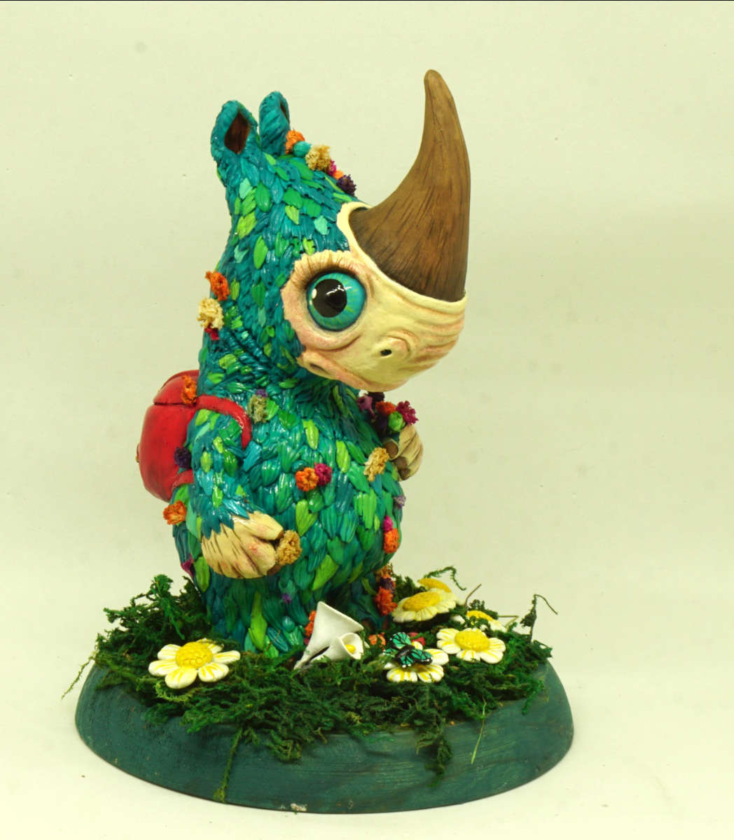 A veces dice sentirse un bicho raro, sentimiento que arranca de su adolescencia y que enriquece sus creaciones que no pueden pasar desapercibidas al resto de bichos humanos que las contemplamos con sana envidia porque tanta creatividad no es normal, es rara, como sus bichos convertidos en esculturas timburtianas, como le gusta definir su obra. No puedo dejar de dar las gracias al gran cineasta por su influencia en Maka aunque yo personalmente creo que de no existir ese creador cinematográfico genial ella hubiera creado igual de onírica, inocente, colorida…