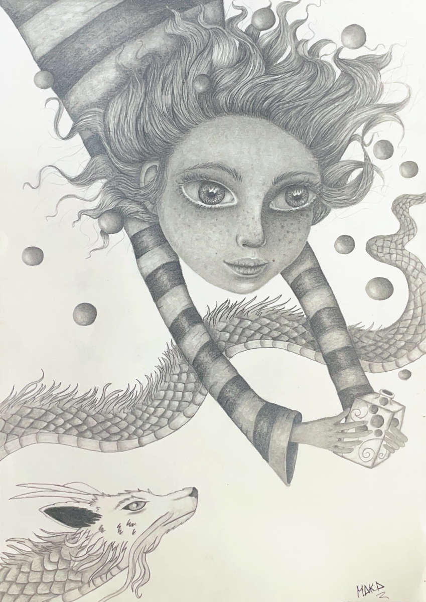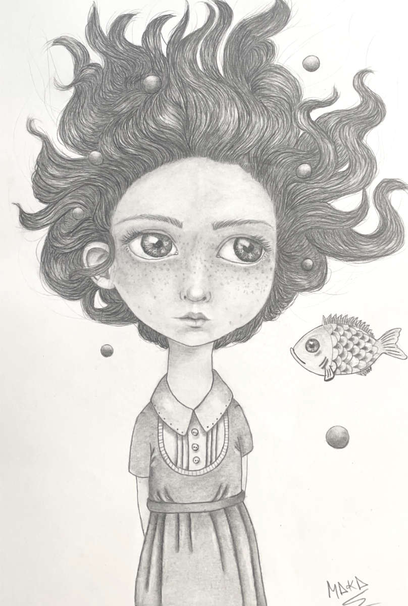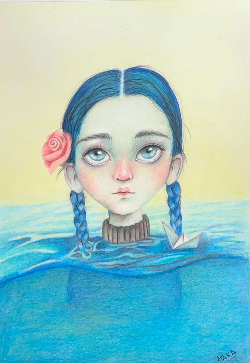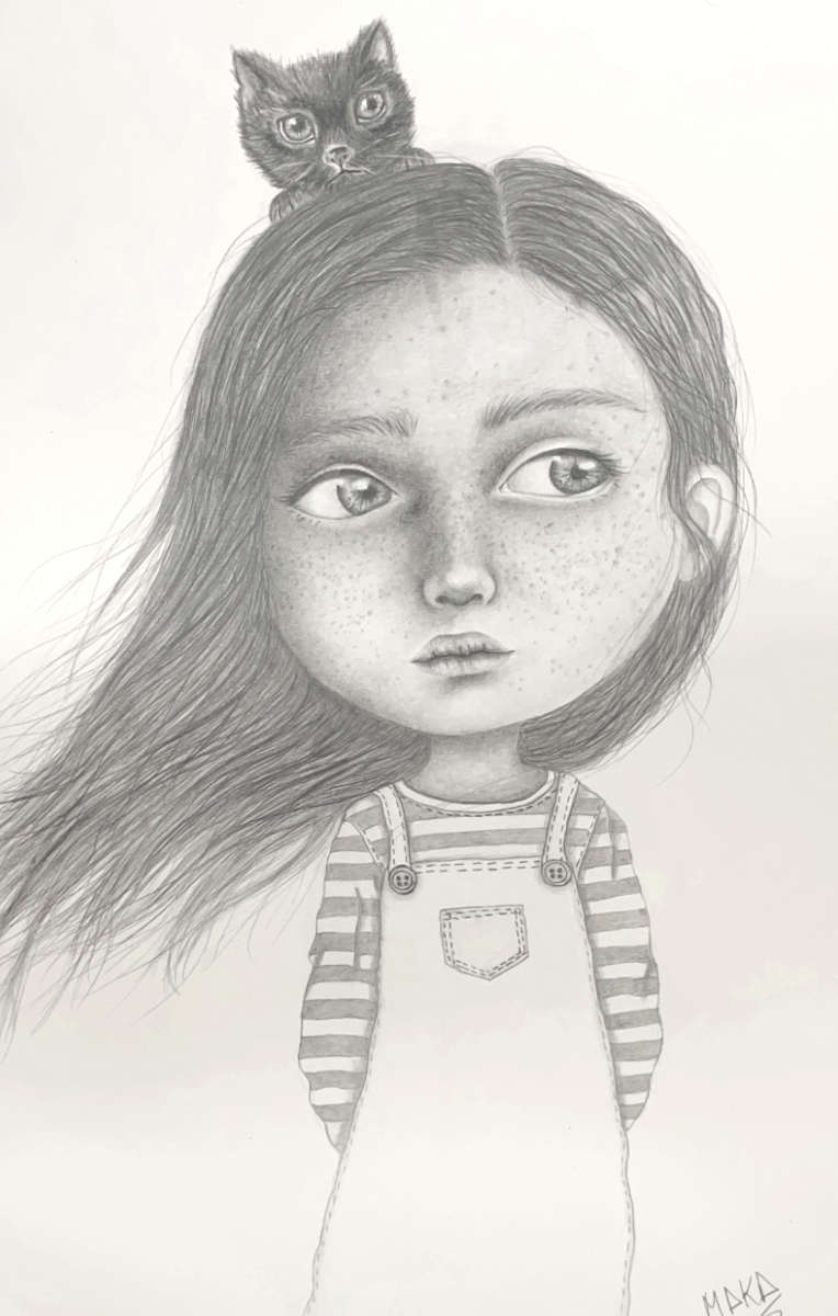 Maka dibuja desde niña y sueña a través de sus obras, en sus dibujos y en sus esculturas se refleja ese mundo onírico que la acompaña desde su infancia, ese mundo que se niega a abandonarla y que la mantiene siempre ilusionada y alegre.