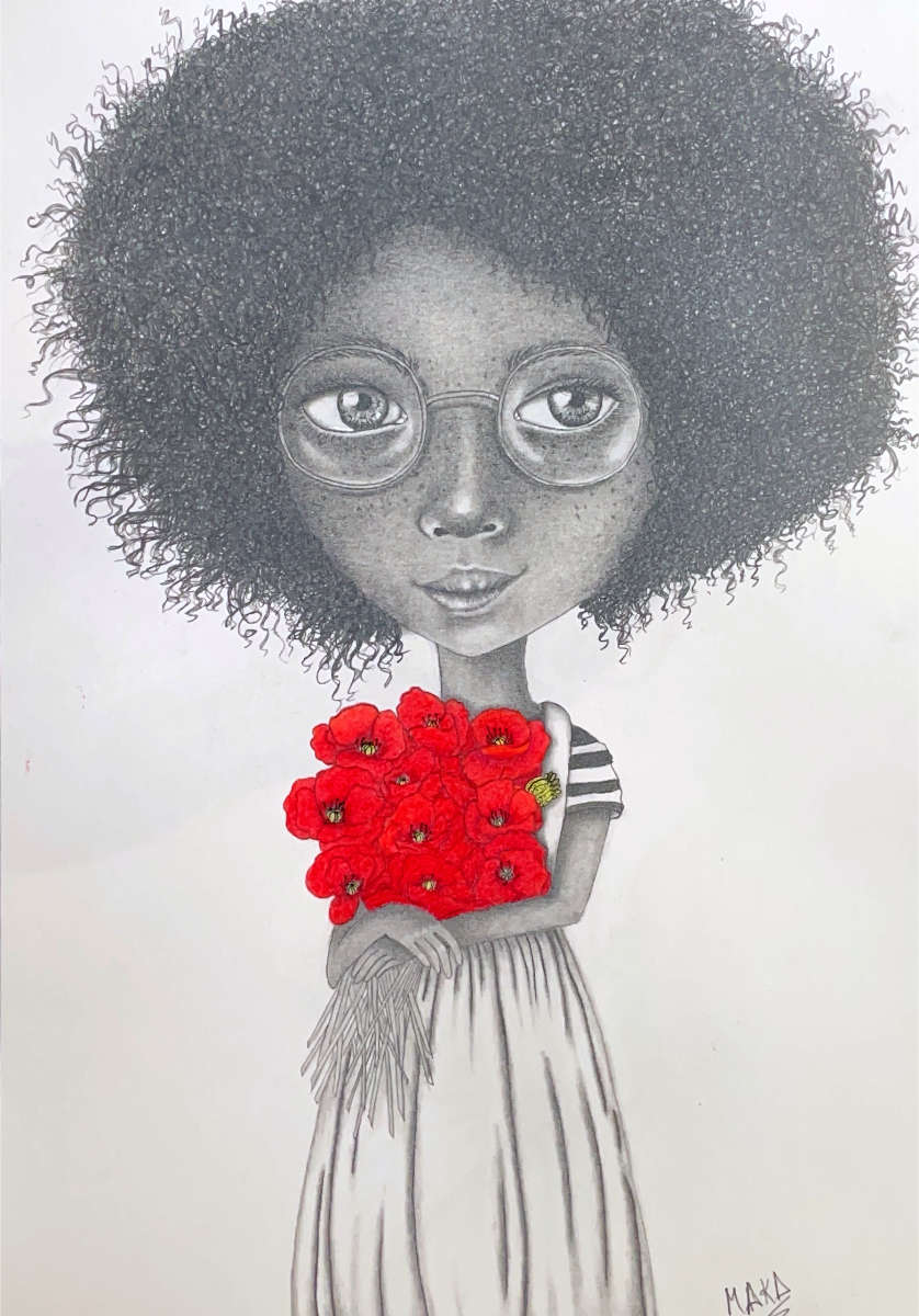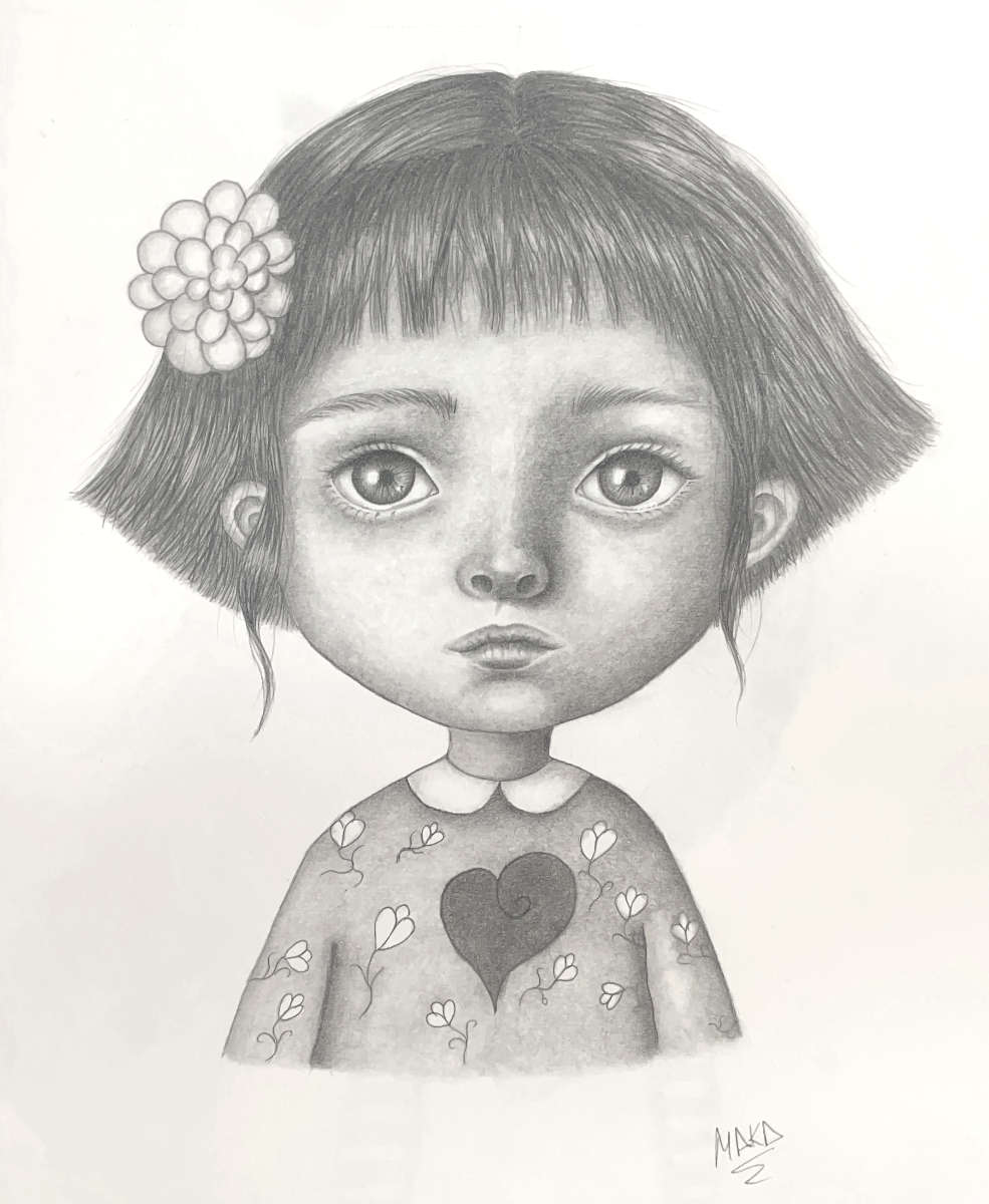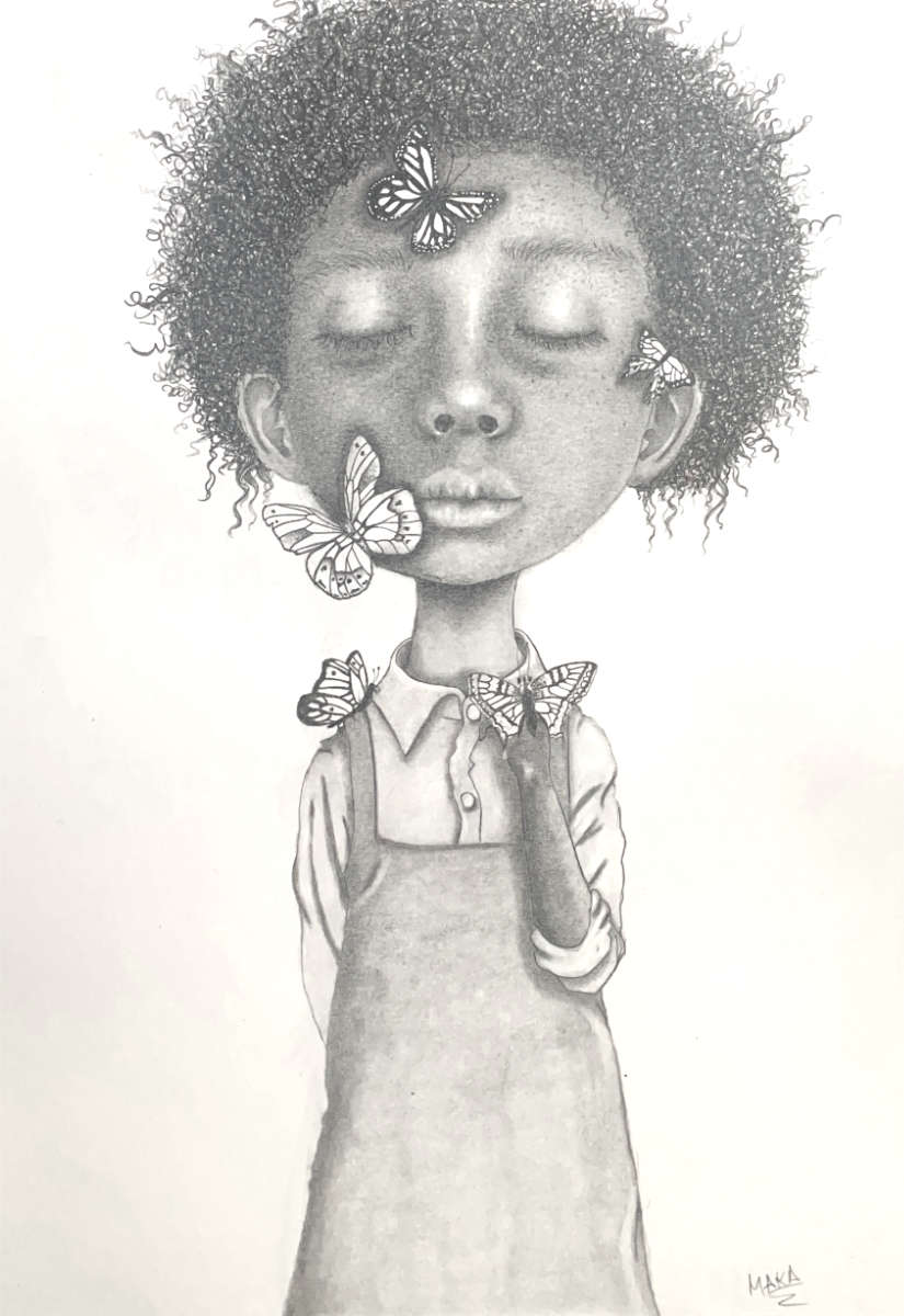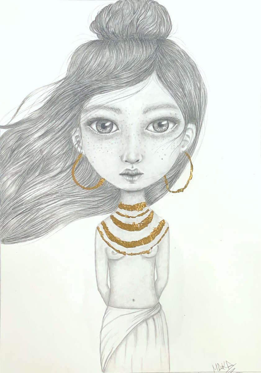 Maka dibuja desde niña y sueña a través de sus obras, en sus dibujos y en sus esculturas se refleja ese mundo onírico que la acompaña desde su infancia, ese mundo que se niega a abandonarla y que la mantiene siempre ilusionada y alegre.